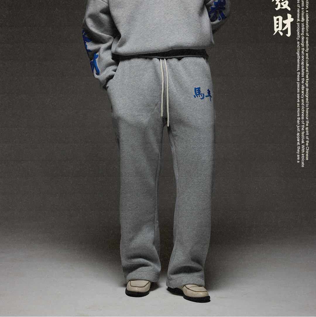 - 馬年 (mǎ nián, "Year of the Horse) - blue Chinese (traditional characters) puff print on the front