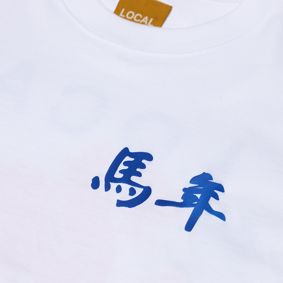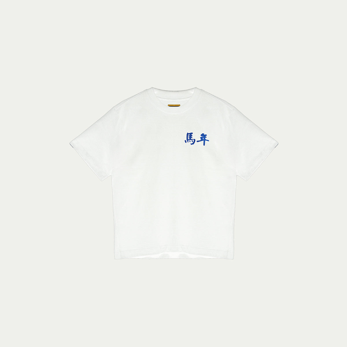 馬年 (mǎ nián, "Year of the Horse) - blue Chinese (traditional characters) puff print on the front