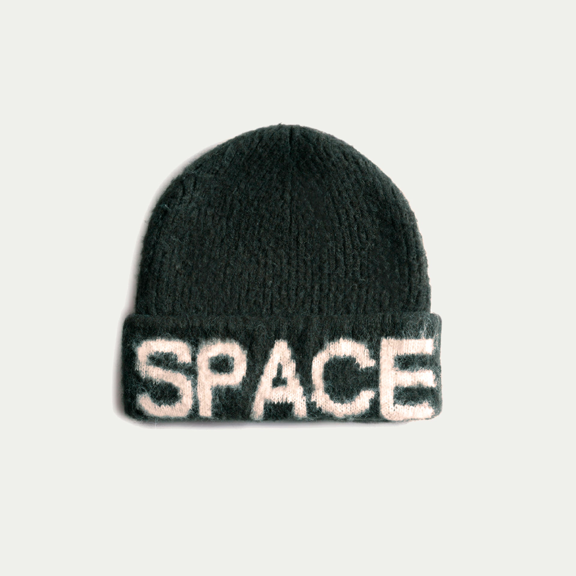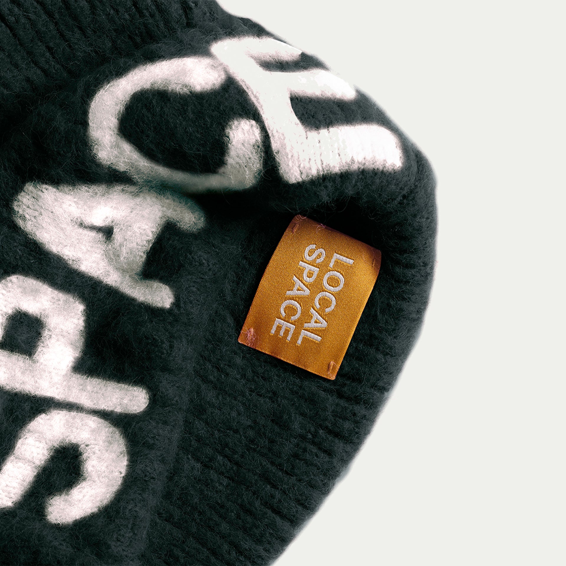 LOCAL and SPACE in bold, knitted-in white text on the cuff all around